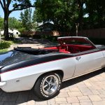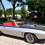 The 1969 Pontiac Firebird Convertible Restomod stands as a mesmerizing amalgamation of classic design and contemporary performance enhancements. Crafted with meticulous attention to detail, this automotive masterpiece pays homage to its heritage while embracing modern innovations. With a gleaming silver exterior that reflects the sunlight in a dance of elegance, and a plush red interior that exudes warmth and sophistication, this car is a true testament to automotive artistry.