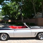 Stepping inside, the allure of the 1969 Pontiac Firebird Convertible Restomod continues to captivate. The interior, adorned in a rich shade of red, strikes a harmonious contrast with the exterior. Meticulously restored, every aspect of the cabin exudes an air of refinement and vintage charm. The blend of classic design elements and modern comforts results in an interior that is both nostalgic and inviting.